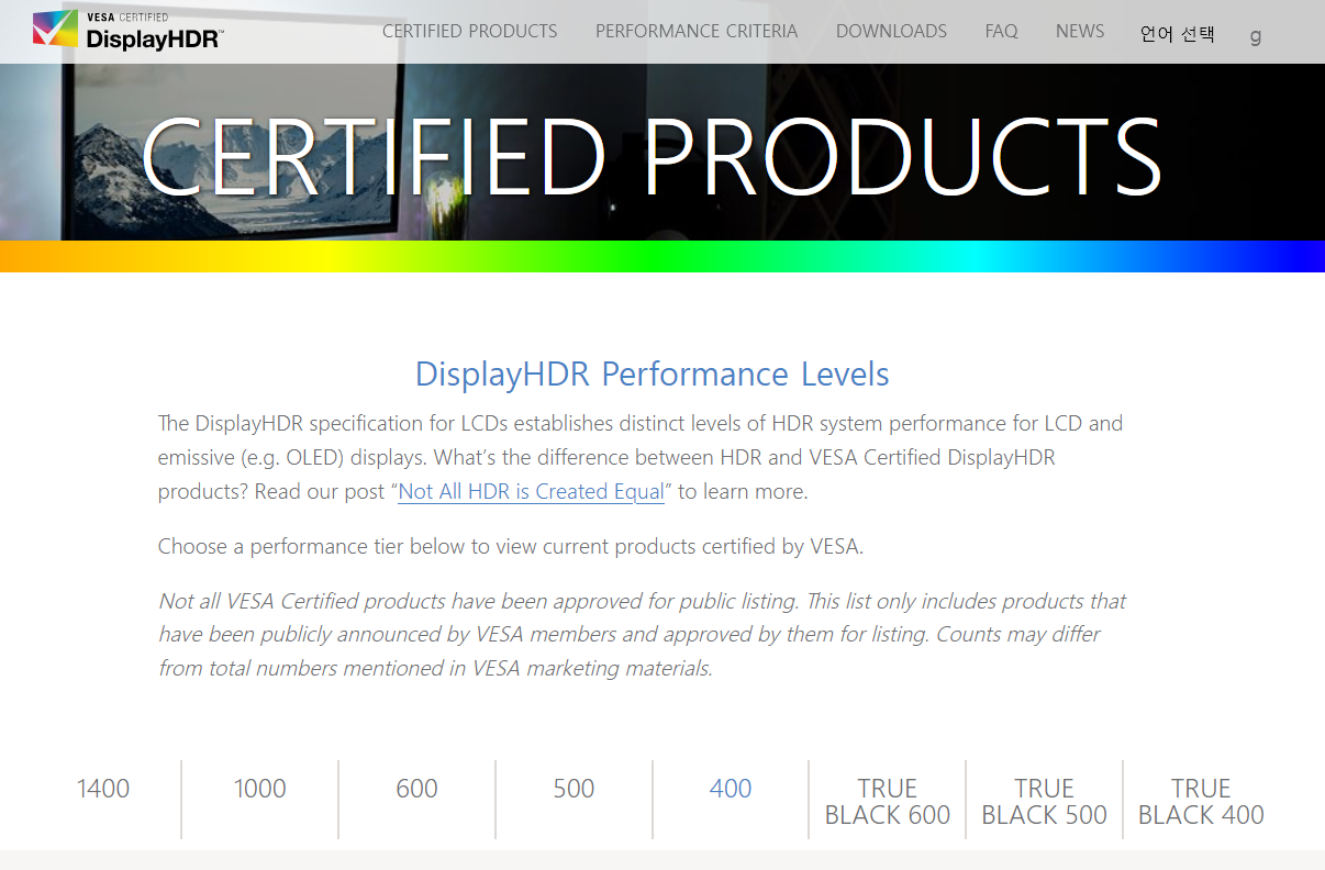 DisplayHDR 400 인증정보 확인 링크 : https://displayhdr.org/certified-products/#tab-400