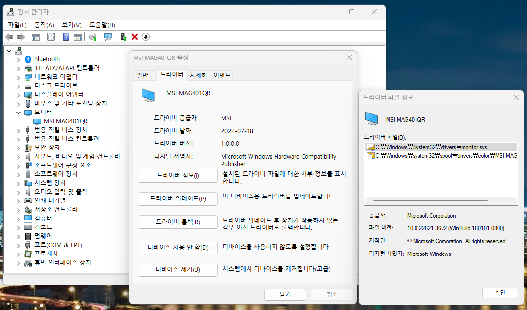 드라이버 다운로드 링크 : https://www.msi.com/Monitor/MAG401QR/support