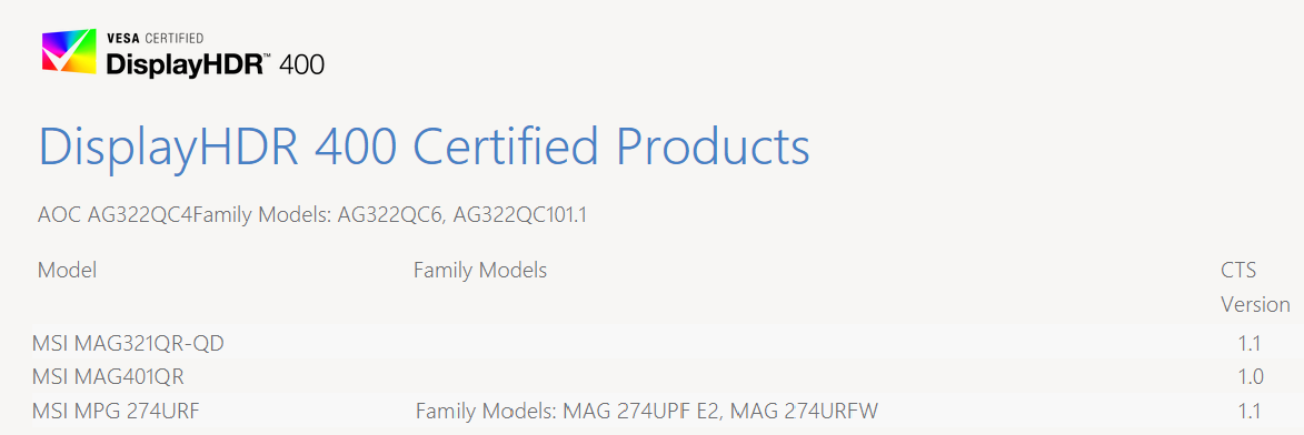 DisplayHDR 400 인증정보 확인 링크 : https://displayhdr.org/certified-products/#tab-400